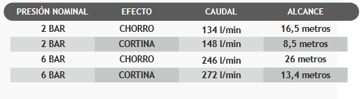 Lança de triplo efeito para hidrante equipada de 45 mm (com encaixe). Graças às suas três posições, a lança permite atacar as chamas com uma cortina de água e fechar gradualmente a cortina até transformá-la em jato de água, dependendo do tipo de chama. É fácil de usar para pessoas com pouco ou nenhum treinamento em combate a incêndios.